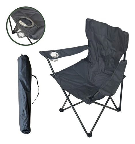 Cadeira Camping Dobrável Com Apoio De Braços E Porta-Copos Importway Preto