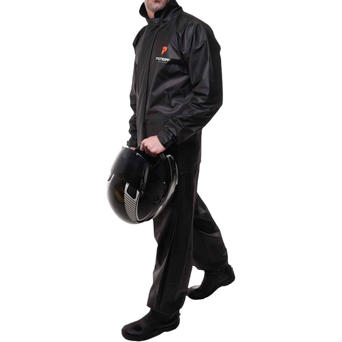 Capa de Chuva Modelo Combate Com Gola - Pioneira: O melhor custo-benefício do mercado! A capa de chuva Pioneira é confeccionado em PVC 0,28mm, conta com uma jaqueta com fechamento através de zíper e velcro recobertos por uma lapela de drenagem, calça com elástico na cintura e regulador em velcro na bainha. opções em capuz ou gola, regulador nos punhos, serigrafia e refletivo nas costas. Calça com elástico na cintura e regulador em velcro na bainha.